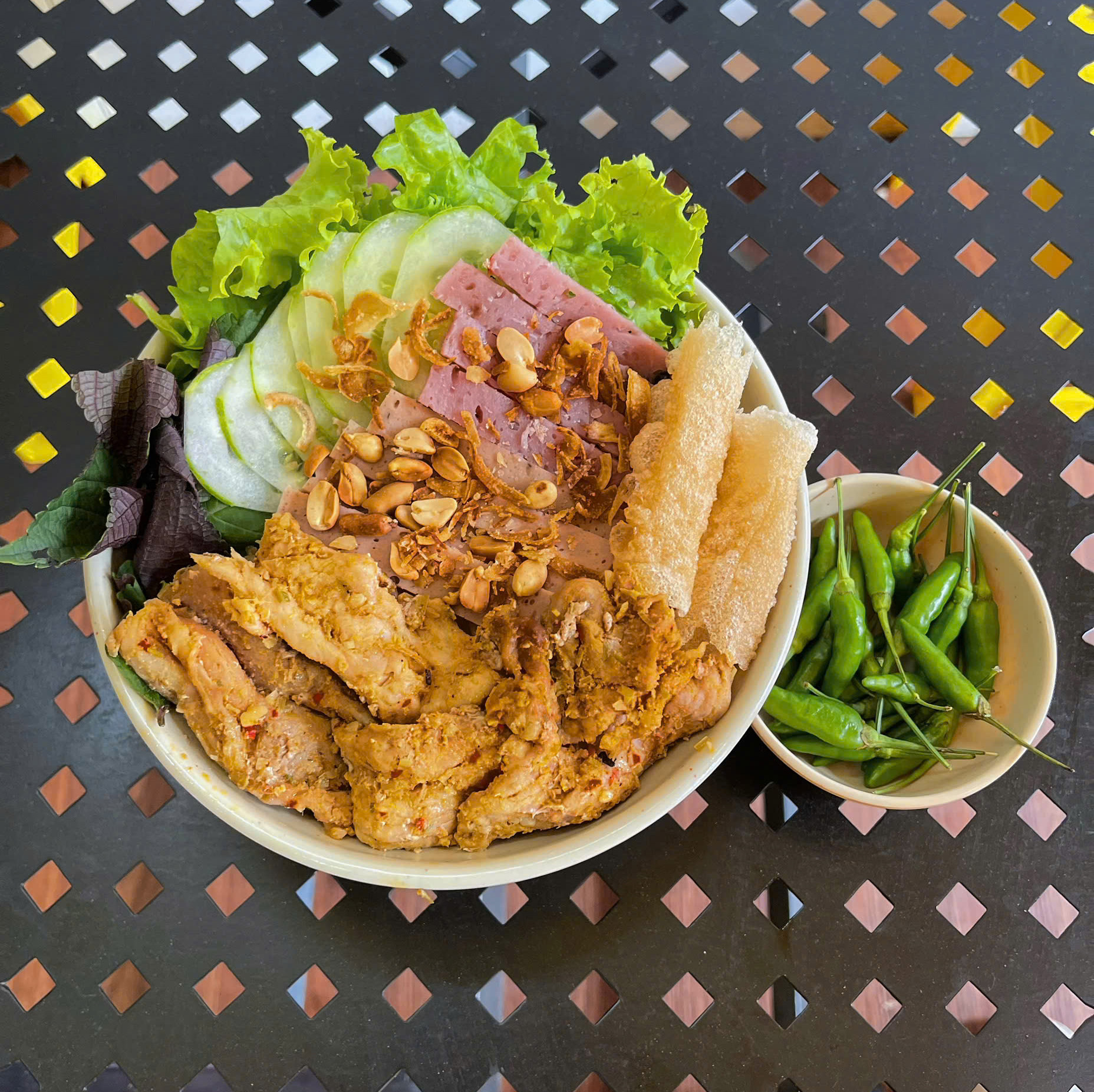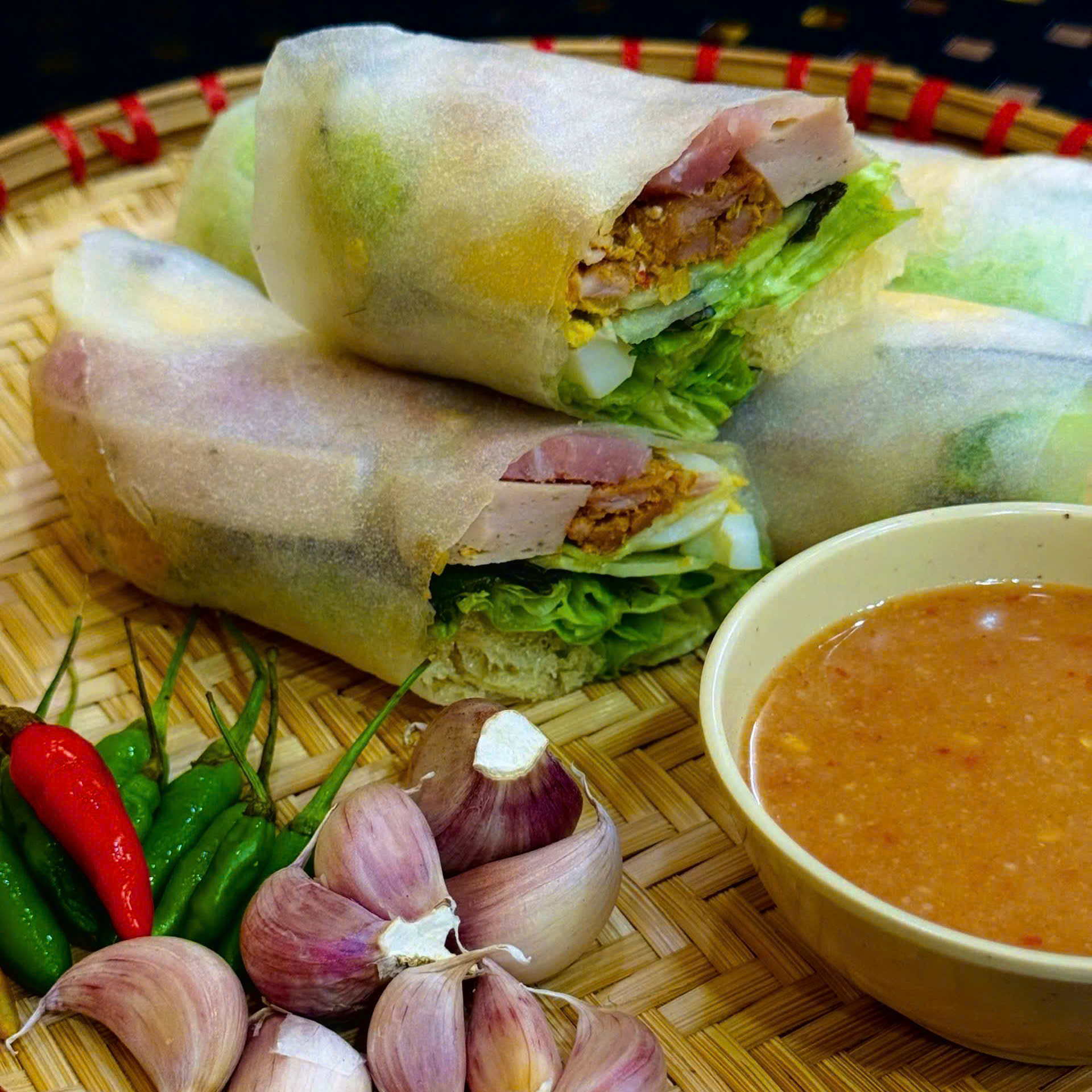 Bánh cuốn Tây Sơn là món ăn truyền thống của vùng đất Bình Định, gồm lớp bánh mỏng mềm được tráng từ bột gạo, cuốn cùng nhân thịt băm, nấm mèo, ăn kèm chả ram giòn rụm, rau sống và nước mắm chua ngọt. Món ăn nổi bật bởi hương vị đậm đà, giản dị nhưng tinh tế, phản ánh nét ẩm thực đặc trưng của miền Trung.